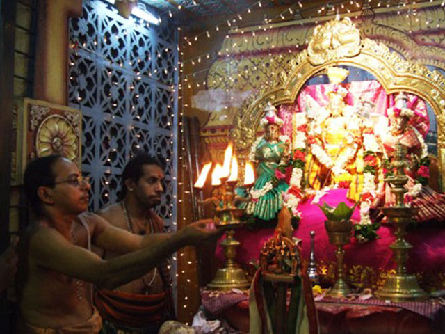 There was a small Siva temple at Muttath owned by a Namboothiri Brahmin, in the 18th century. The Namboothiri gave the temple and the associated land to two GSB families (Alungal and Kothakulangara) and left the place. These familes dedicated the temple and its properties to the GSB community of Muttath. A temple was later constructed (facing East) and prathista done in 1763 AD by His Holiness Srimat Madhavendra Tirtha Swamiji of Kashi Mutt.