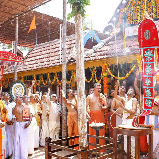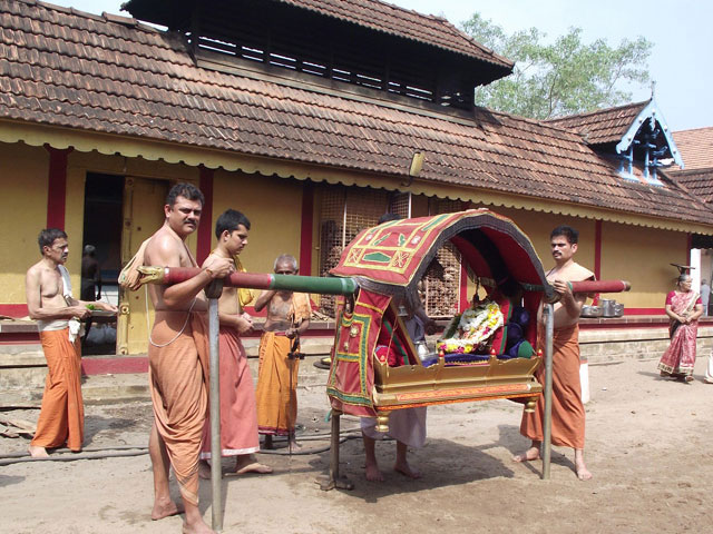 There was a small Siva temple at Muttath owned by a Namboothiri Brahmin, in the 18th century. The Namboothiri gave the temple and the associated land to two GSB families (Alungal and Kothakulangara) and left the place. These familes dedicated the temple and its properties to the GSB community of Muttath. A temple was later constructed (facing East) and prathista done in 1763 AD by His Holiness Srimat Madhavendra Tirtha Swamiji of Kashi Mutt.